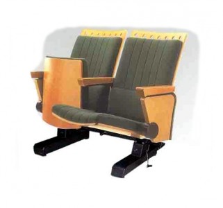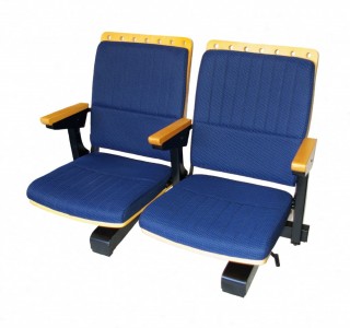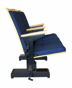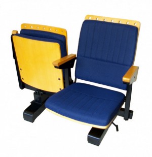 Fold up seat & arms. Ply seat & outside back upholstered foam seat & back on heavy duty lockable castors for easy moveability.