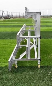 The moveable aluminium tiered seating unit is perfect for the field side, poolside or courtside. With it’s light-weight aluminium construction it is easy to move, just tip it on it’s side and wheel it out of the way.