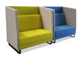 The Cube Pod can be upholstered in any fabric or vinyl. The Melteca desktops are available in a range of colours.