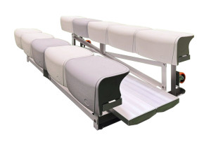 The Echo Portable Bleacher is an easy-to-use, convenient, moveable seating system. It comes with ergonomically designed Echo polymer seat for comfort and features double aluminium planks for access to the rows. Just tilt the seat back onto the castor wheels and push it to the desired location. Perfect for court, field and poolside.