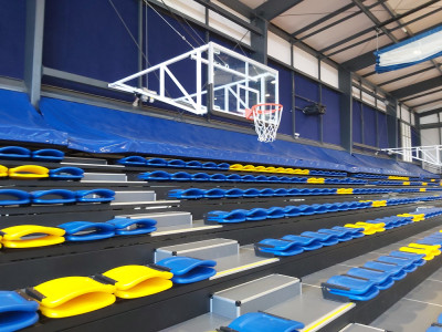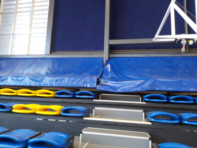 The Ball Deflector is ideal for retractable seating in gyms. It can be added to any unit to stop balls from getting stuck on top of retractable units.