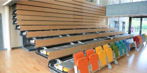 Ball Restrictor Panels are suitable for gymnasiums. They allow all the convenience and comfort of retractable seating, without the hassle of having to remove balls from the unit.
