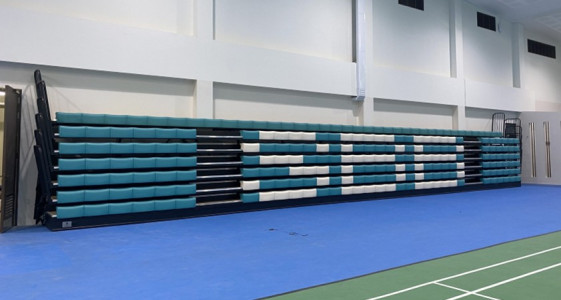 The Intials option for retractable seating is a great way to personalize your seating and represent your organization. Create your initals with individual seating on your retractable unit. The larger the retractable, the more the initials stand out.