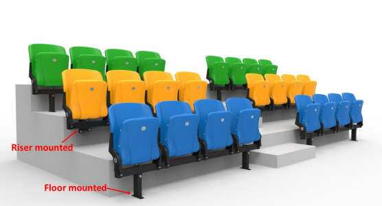 The Vino tip-up seat base and back are blow molded by using high quality High Density Polyethylene (HDPE). All material is UV or FR rated as required. Designed arm rest are available. It has a die casted and powder coated aluminium stanchion. The seat has been ergonomically designed for the utmost comfort. The Vino can be riser or floor mounted.