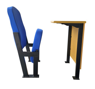 The AK-9060 Lecture Theatre Seat & Desk is a hard wearing and practical design. The AK-9060 is made up of wrap around commercial grade foam and fabric with a sturdy steel frame. The seat folds up to allow easy access along the rows. The leg is made of cold rolled steel that has been pwder coated. The desktop is made of 25mm MDF that has been laminated, with a 15mm laminate privacy panel. The AK-9060 Lecture Seat and Desk design is simple and easy to use.