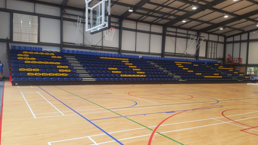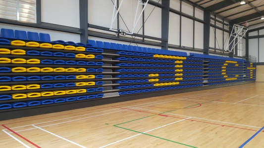 The Intials option for retractable seating is a great way to personalize your seating and represent your organization. Create your initals with individual seating on your retractable unit. The larger the retractable, the more the initials stand out.