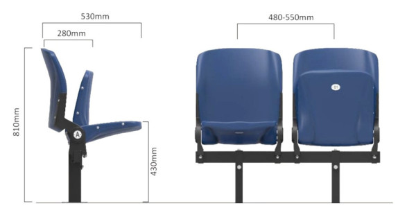 The Vino tip-up seat base and back are blow molded by using high quality High Density Polyethylene (HDPE). All material is UV or FR rated as required. Designed arm rest are available. It has a die casted and powder coated aluminium stanchion. The seat has been ergonomically designed for the utmost comfort. The Vino can be riser or floor mounted.