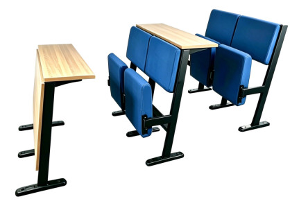 The AK-9016 has a foam upholstered seat and back with a hinged self-returning seat for ease of movement along the row. The frame is made from tubular powder coated steel and, the desk top is laminated for easy care. The middle rows are made up of a seat/desk combo. With the front row desk only and the back row seat only.